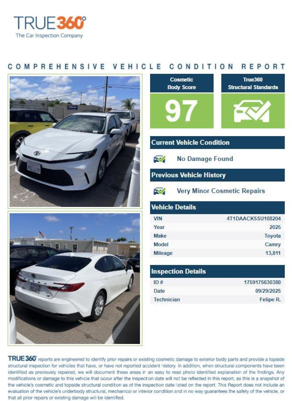 Certified. White 2025 Toyota Camry LE FWD eCVT 2.5L 4-Cylinder 16V DOHC 2.5L 4-Cylinder 16V DOHC.
